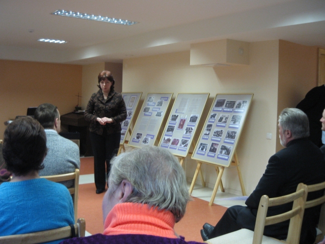 Saldus muzeja direktore Agrita Ozoliņa stāsta par lielo Saldenieku atsaucību veidojot šo piemiņas izstādi