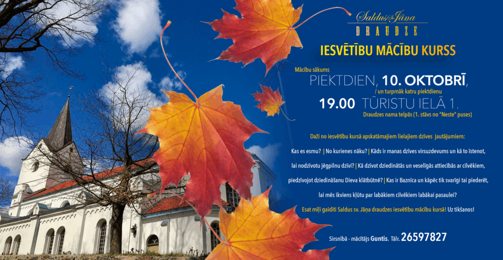 Jaunumi Mīļi gaidīsim! 16/09/2025 Facebook X Pinterest Whatsapp Email Atbildēt Atcelt atbildiYour email address will not be published. Rekvizīti LATVIJAS EVAŅĢĒLISKI LUTERISKĀS BAZNĪCAS SALDUS SVĒTĀ JĀŅA DRAUDZE Kuldīgas iela 2,Saldus, LV-3801N.M.R. 90000158433 A/S “SEB banka”, Saldus filiāle LV28UNLA 0015 0007 0110 1 Noderīgas saitesLELB.lv Svētā Gregora izglītības centrs Cēsu Sv. Jāņa draudze Luterisma mantojuma fonds Bībele.lv Stunda.lv Latvijas kristīgas radio lidingoforsamling.se Jaunākās ziņas Gaidīsim! Klāt ir! Mīļi gaidīsim! Hei! Nāciet un baudiet!